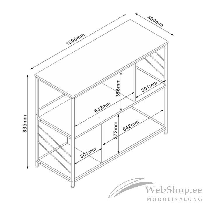 Arvustatav toode:Riiul DIMITRA 100x40xH83,5cm, rustik/mus
