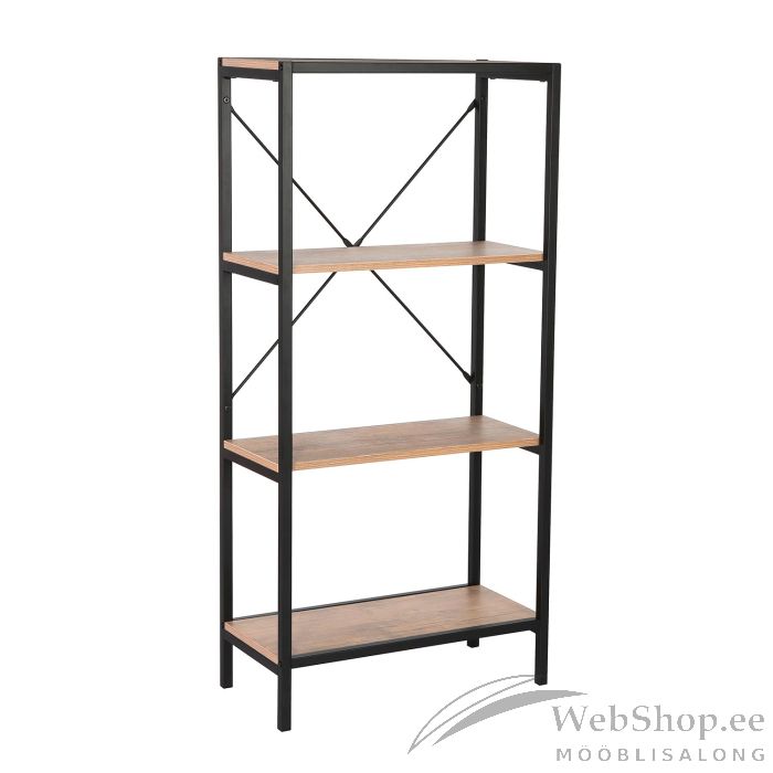 Riiul LAVINA 60x30xH127,5cm, saar/must. Riiuli raam on valmistatud metallist ja viimistletud musta pulbervärviga. Riiulid on valmistatud saaredekooriga melamiinplaadist.