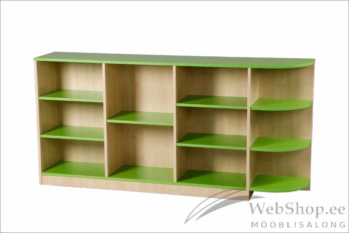 Riiul on mõeldud mänguasjade ja muude asjade hoidmiseks. Valmistatud 18 mm paksusest puitlaastplaadist 2 mm paksuse ABS äärisega, kombineerides vahtra ja rohelisi toone. Kõik nurgad on laste ja teiste kasutajate ohutuse huvides ümardatud.