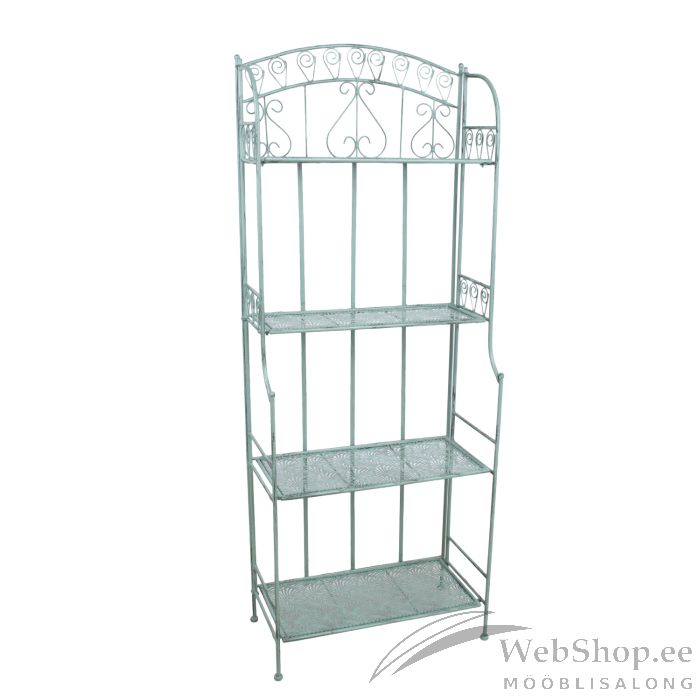 Riiul MINT 60x32xH156cm, antiikroheline. Sepistatud metallist mööbel on stiilne, vastupidav ja lihtsalt hooldatav! Toote viimistlemisel on kasutatud kombineerituna elektroforeeskatet ja pulbervärvi, mis tagab väga hea roostekindluse. Ülemiste riiulite mõõdud on 55x21cm, alumiste riiulite mõõdud on 55x27cm, riiulite vahe 38cm. Toode sobib kasutamiseks nii sise kui väli tingimustes.