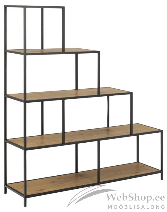 Maitsekas riiul, mis muudab ruumi stiilsemaks. Riiulil on asümmeetriline disain ja astmeline kuju. Raam ja alus: mattmust pulbervärvitud metall. Mõõdud on 135x35xH150cm. HOOLDUS: Kasutage seebiveest kuivaks väänatud lappi ja pühkige pind kuivaks. Vältige küürimispulbri või nailonkäsnade kasutamist, kuna need pleegitavad või kriimustavad materjali. Ärge hõõruge pinda kõvade esemetega.