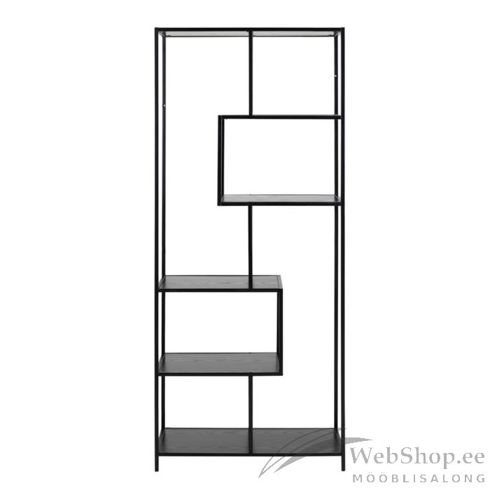 Riiul SEAFORD 77x35xH185cm, 5x, riiulid: must saare melamiin, raam: must metall, asymmetric