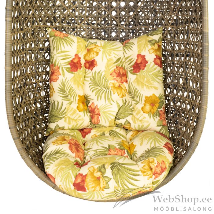 Ripptooli padi CORA kollane. Mugavad ja pehmed padjad on sobivad ripptoolidele CORA ja PANGOLIN. Padjad on kaetud polüesterkangaga, millel on troopiline lilleline muster. Istmepadja mõõdud on D70x14cm ning seljatoepadja mõõdud on 65x52cm. HOOLDUS: patju ei tohiks jätta pikemaks ajaks päikese või vihma kätte. Toote eluiga väheneb UV-kiirguse ja liigniiskuse mõjul ning värvid tuhmuvad. Toodet peaks hoiustama kuivas ja varjulises ruumis. HOIATUS: toode pole mõeldud kasutamiseks tugeva tuule ja vihma korral.