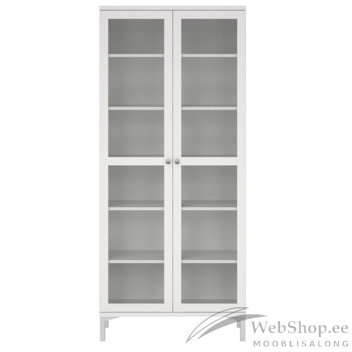 Vitriinkapp on valmistatud mööbliplaadist. Kapi kahe ukse taga on viis vaheriiulit. Uksed on klaaspaneelidega.
