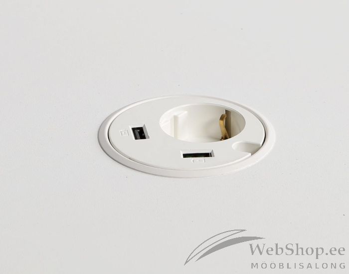 Valge pistikupesa, kaablikanal, ku on kaks USB-laadijat.Saab integreerida lauaplaadile. Lauaplaadile paigaldamiseks pöörduge palun müügijuhi poole.