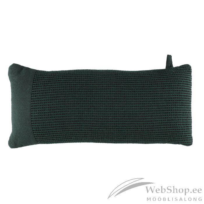 Saunapadi RENTO GREEN. Saunapatja on mugav kasutada saunas pea ja kaela toetamiseks. Padjal on ühel poolel chambray-kandid. Toode on valmistatud taaskasutatud puuvillast, mis annab kangale loomuliku pehmuse ja elava tekstuuri. Padja mõõdud on 50x22x12cm.