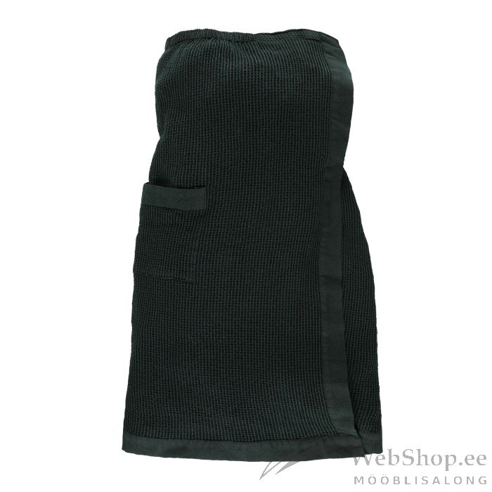Sarong RENTO GREEN 85x145cm. Sarong saunaseelik on mugav ja sundimatu riietusese. Lai chambray-kant lisab elegantse viimistluse. Tootel on velcro-kinnitus. Toode on valmistatud taaskasutatud puuvillast, andes kangale loomuliku pehmuse ja elava tekstuuri.