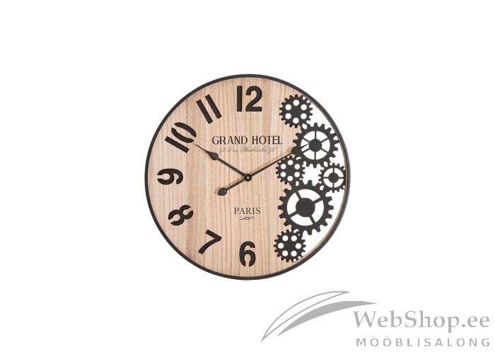 Industriaalses stiilis puiduimitatsiooniga MDF-plaadist seinakell. Raam ning detailid on musta värvi metallist. Kell töötab AA patareiga (ei kuulu komplekti). Lisaks oma praktilisele eesmärgile on kell sisekujunduses ka dekoratsiooni rollis.