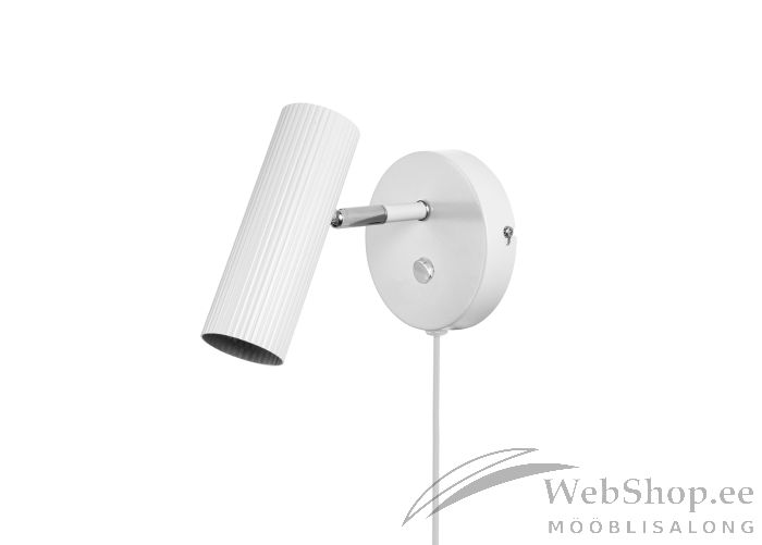 Modernne toru kujulise kupliga seinalamp. Lamp on valmistatud valgest, detailid kroomitud metallist. Lambi kuppel on erinevat pidi kallutatav ja suunatav. Lambil on 200cm pikkune tekstiilist kaabel. Lüliti asub lambi peal. Lambile sobib elektripirn max 28W, sokliga GU10. Valgusallikas ei kuulu komplekti. Skandinaavia disain.