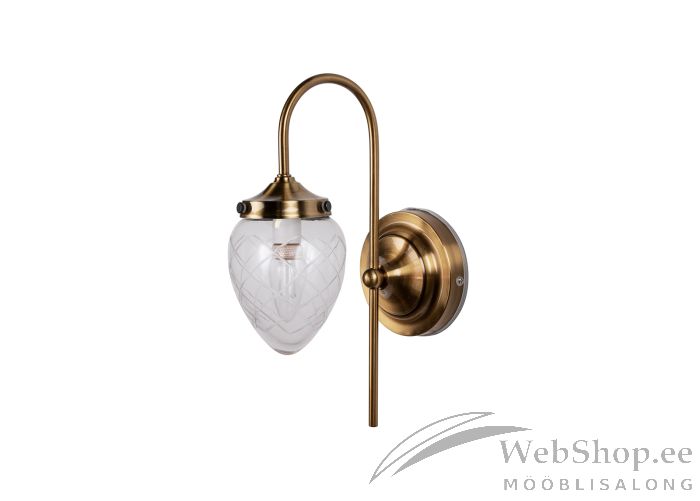 Läbipaistvast klaasist kupliga seinalamp. Harjatud messingust raam. Lambile sobib elektripirn max 40W, sokliga E14. Valgusallikas ei kuulu komplekti. IP44. Lamp kinnitatakse juhtmetega otse seina. Valgustugevuse reguleerimise võimalus seinalülitist. Skandinaavia disain.