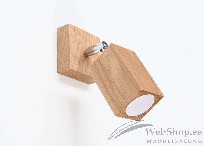 Stiilne puidust seinalamp. Viimistlus: tamm. Lambile sobib elektripirn max 40W, sokliga GU10. Valgusallikas ei kuulu komplekti. Kupli suund on reguleeritav. Lamp kinnitatakse juhtmetega otse seina.