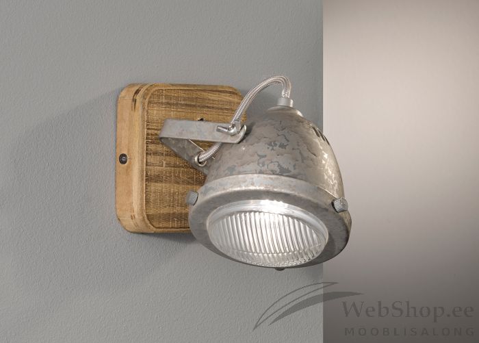 Puidust raami ning antiik tsingi tooni metallist seinalamp. Lambile sobib elektripirn max 10W, sokliga GU10. Valgusallikas ei kuulu komplekti.