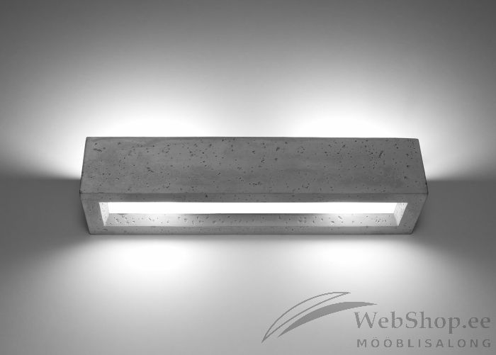 Stiilne betoonist seinalamp. Viimistlus: hall. Lambile sobivad elektripirnid 2x max 60W, sokliga E27. Valgusallikad ei kuulu komplekti. Lamp ühendatakse juhtmetega otse seina.