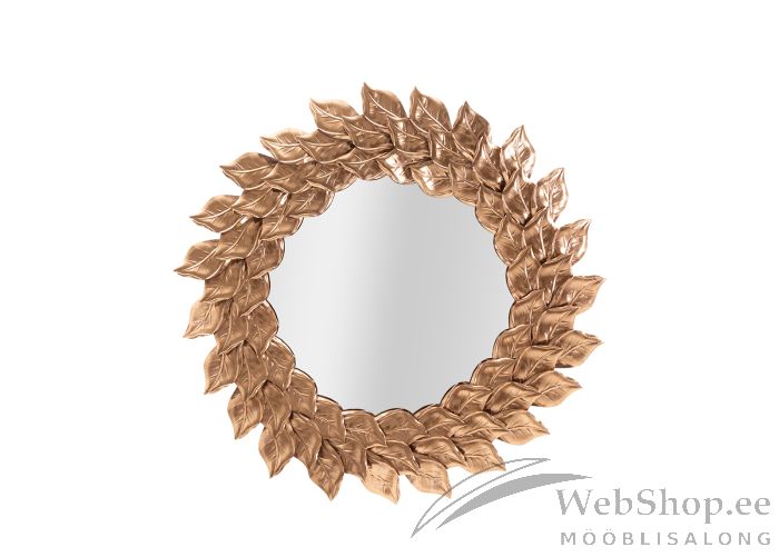Vask tooni lehemotiiviga metallist raamiga stiilne seinapeegel. Lisaks oma praktilisele eesmärgile on seinapeegel sisekujunduses ka dekoratsiooni rollis.