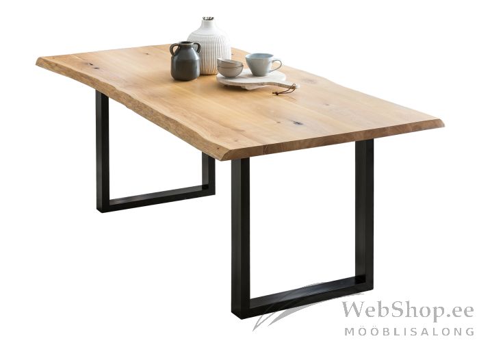 Naturaalsest tammepuidust lauaplaadiga söögilaud. Jalad on musta värvi metallist. Iga toode on originaalne ja võib erineda pildil olevast, sest on naturaalsest puidust.