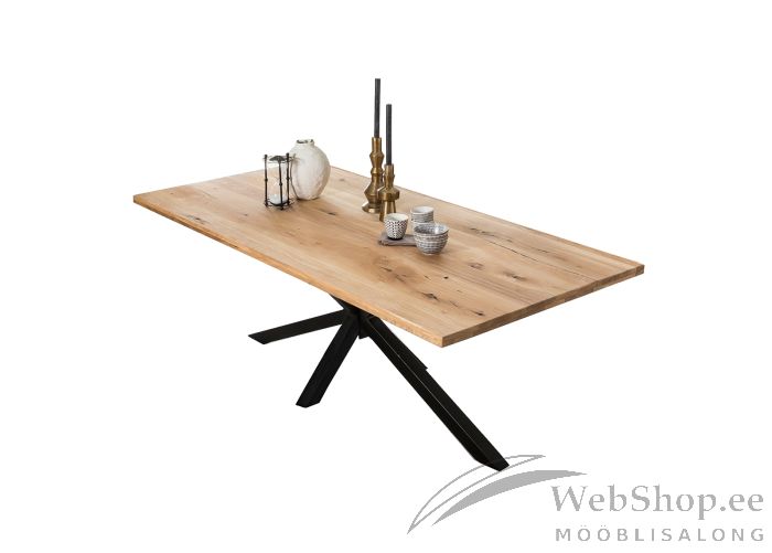 Naturaalsest tammepuidust valmistatud lauaplaat ja pilkupüüdev metallist lauajalg. Lauaplaadi paksus on 40 mm. Iga lauaplaat on unikaalne ning naturaalsest puidust tingituna võib esineda mõningast värvierinevust, oksakohti ning pisitäkkeid, mis on loomulik ega kujuta endast vigu, vaid rõhutavad puidu individuaalset iseloomu.