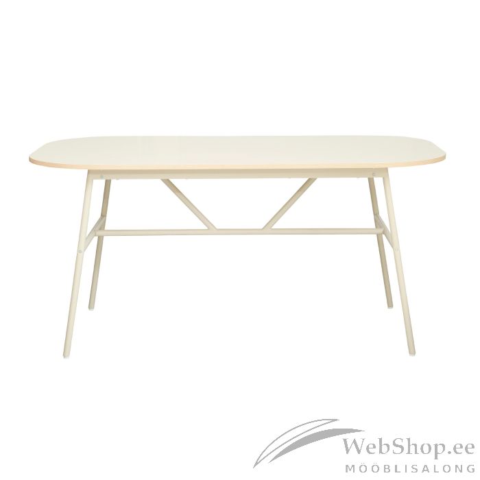Söögilaud DESMOND 160 x 90 x H76 cm, beež. Lauaplaat: beež melamiinplaat, tamme värvi PVC äärega. Jalad ja raam on valmistatud metallist ja viimistletud beeži pulbervärviga.