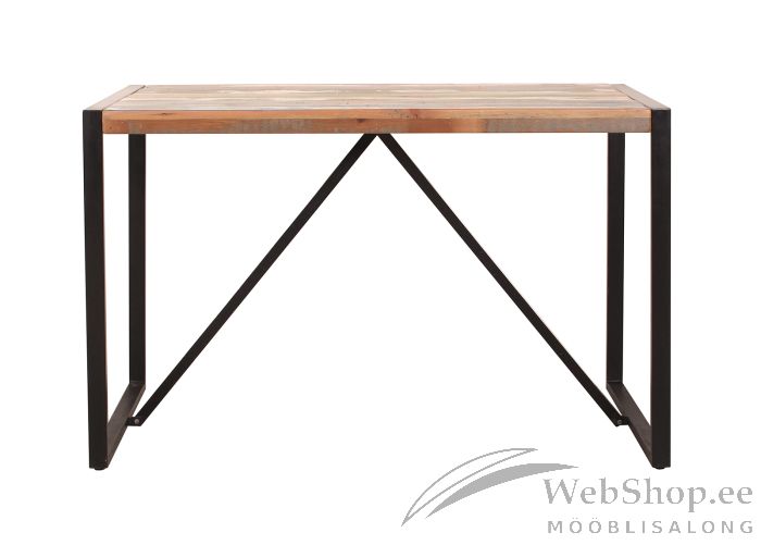 Taaskasutatud puidust valmistatud söögilaud. Viimistlus: mitmevärviline. Musta värvi metallist jalad.
