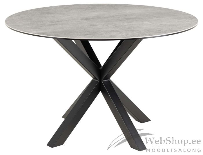 Söögilaudade puhul on praktilisus ja disain võrdselt olulised. See laud on nii funktsionaalne kui ka esteetiliselt silmapaistev. Söögilaud mahutab mugavalt 4 inimest. Halli lauaplaadi ja musta värvi skulptuurse ristialuse kombinatsioon annab lauale julge välimuse. Kuuma- ja kriimustuskindlast keraamikast ning tugevast terasest valmistatud laud sobib ideaalselt igapäevaseks kasutamiseks kuid ka pidulikeks sündmusteks. Mõõdud on 119x119xH75,5cm. HOOLDUS: Keraamika on kuuma- ja kriimustuskindel materjal, mis vajab minimaalset hooldust. Kui tekivad plekid, pühkige pind puhtaks kuivaks väänatud kiudlapiga või paberrätikuga. Pinnakahjustuste vältimiseks kasutage klaasialuseid. Alus: Kasutage igapäevaseks puhastamiseks seebiveest kuivaks väänatud lappi. Rooste vältimiseks pühkige pind kuivaks. Ärge hõõruge pinda kõvade esemetega.