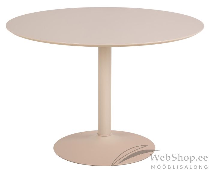 Minimalistliku disainiga ümmargune söögilaud mahutab mugavalt 4 inimest. Mõõtmed muudavad selle ideaalseks väiksemate söögitubade jaoks. Beež värv suurendab laua esteetilist atraktiivsust. Lauaplaat on valmistatud beežiks värvitud MDF-st. Alus on valmistatud mattbeežist pulbervärvitud terasest. Mõõdud D110xH74cm.