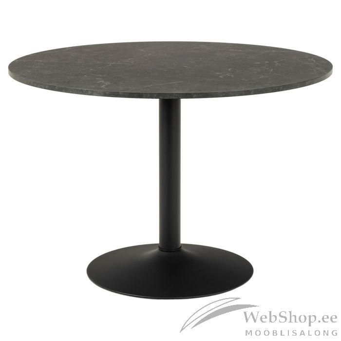 Laual on ümar kuju ja luksuslik marmortrükist pind, mis lisavad kogu söögitoale isikupära. Laud on stabiilne tänu laiemale metallist jalale. Mahutab mugavalt kuni 4 inimest. HOOLDUS: Melamiinpinnad vajavad minimaalset hooldust. Kasutage seebivees tugevasti väänatud lappi ja pühkige kindlasti kuivaks. Vältige küürimispulbri või nailonkäsnade kasutamist, kuna need pleegivad või kriimustavad laminaati. Rooste vältimiseks pühkige pind lapiga kuivaks. Ärge hõõruge pinda kõvade esemetega.