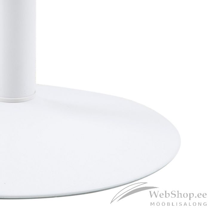 Söögilaud on modernse ja minimalistliku välimusega. Ümmargune laud on ideaalse suurusega väiksemate köökide jaoks. Valge metallist alus tagab laua stabiilsuse. Hoolikalt valitud materjale on lihtne hooldada. Lauaplaat: MDF, jalg: metall. Mõõdud on D110xH74cm.