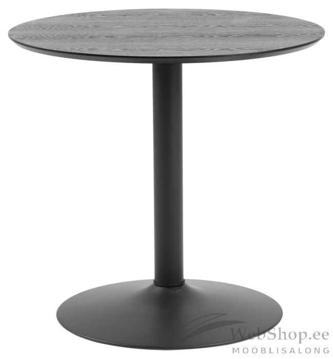 Moodne ja minimalistlik. Hoolikalt valitud materjalid on lihtsasti hooldatavad. Lauajala kuju tagab laua stabiilsuse. Lauaplaat: lakitud spoon. Alus: mattmust pulbervärvitud metall. Mõõdud D80xH75cm. HOOLDUS: Üldiselt vajavad lakitud pinnad vähe hooldust. Kõik plekid tuleb koheselt eemaldada seebiveest kuivaks väänatud lapiga ja pühkida pind kuivaks. Klaasialused ja lauamatid aitavad vältida pinnakahjustusi. Ärge hõõruge pinda kõvade esemetega.