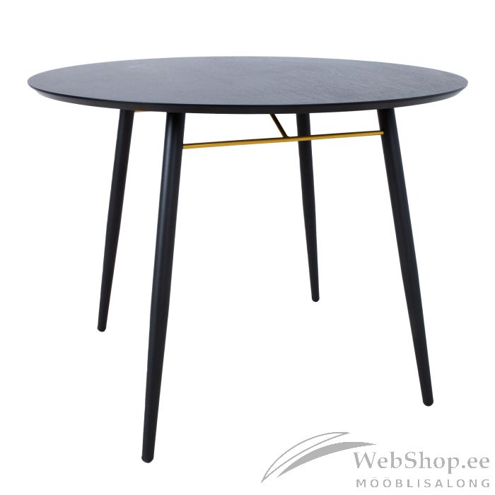 Söögilaud LUXEMBOURG D100xH75cm, must melamiin. Lauaplaat: 18mm puidudekooriga melamiinkattega mööbliplaat. Lauajalad on valmistatud metallist ja viimistletud musta pulbervärviga. Lauajalgu seovad vasevärvi metallist detailid, mis annavad lauale stiilse välimuse ja samas tagavad aluskonstruktsiooni tugevuse.