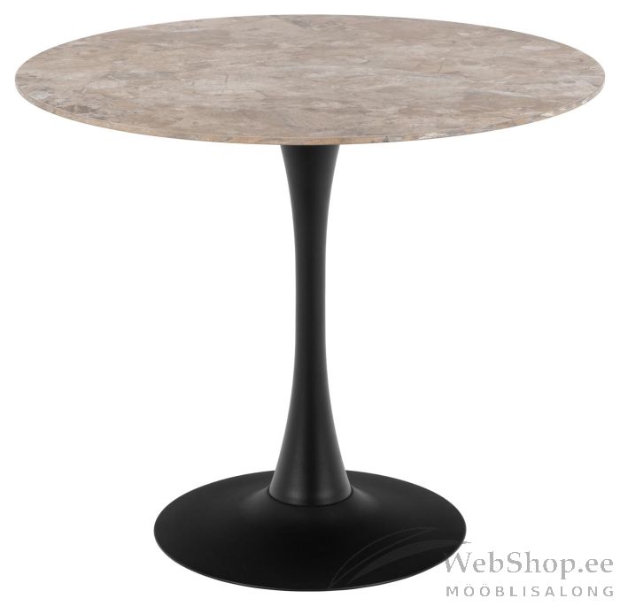 Laud on moodsa välimusega. Keraamiline lauaplaat on kergesti hooldatav. Sellel on kuuma- ja kriimustuskindlad omadused. Laua disain on nii esteetiline kui ka praktiline. Lauaplaat on valmistatud pruunist Aberta keraamikast. Alus on valmistatud mattmustast pulbervärvitud terasest. Mõõdud D90xH75cm.