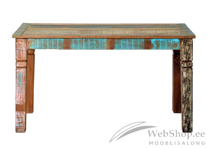 Puidujäätmetest mitmevärviline söögilaud. Maksimaalne kandevõime 150kg. toode on käsitsi valmistatud ning isikupärastab iga kodu.