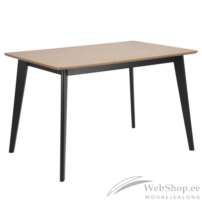 Söögilaud ROXBY 120x80xH76cm, tamm. Lauaplaat: naturaalse tamme spoon, lakitud, jalad: kummipuu, mustaks värvitud.
