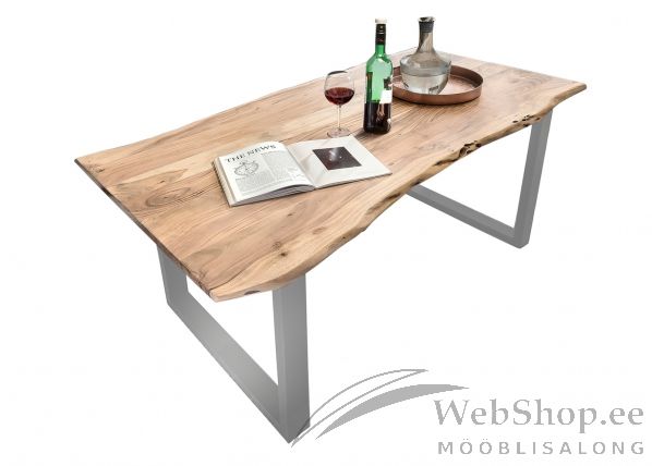Naturaalsest akaatisapuidust lauaplaadiga söögilaud. Kumerad ääred. Jalad metallist