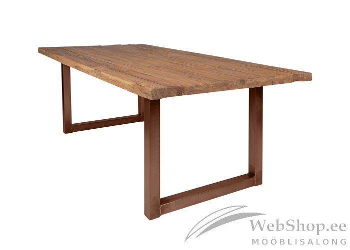 Taaskasutatud tiikpuust lauaplaadiga söögilaud. Viimistlus: naturaalne. Jalad on metallist, antiikpruunid.