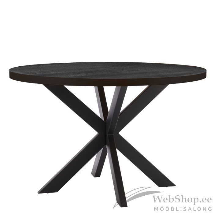 Söögilaud VANCOUVER D120xH75cm, must suitsutamm. Laua MDF plaat on kaetud naturaalse tammespooniga. Laua metallist ristjalad on viimistletud musta pulbervärviga. HOOLDUS: naturaalse spooniga kaetud lauaplaat on väga tundlik niiskuskahjustuste ja temperatuuri suhtes. Kasutage alati lauanõude all alusmatte ja kuumaaluseid. Igasugune lauale sattunud vedelik tuleb koheselt kuivatada pehme lapiga. Vältige liigset hõõrumist ja abrasiivseid puhastusvahendeid.