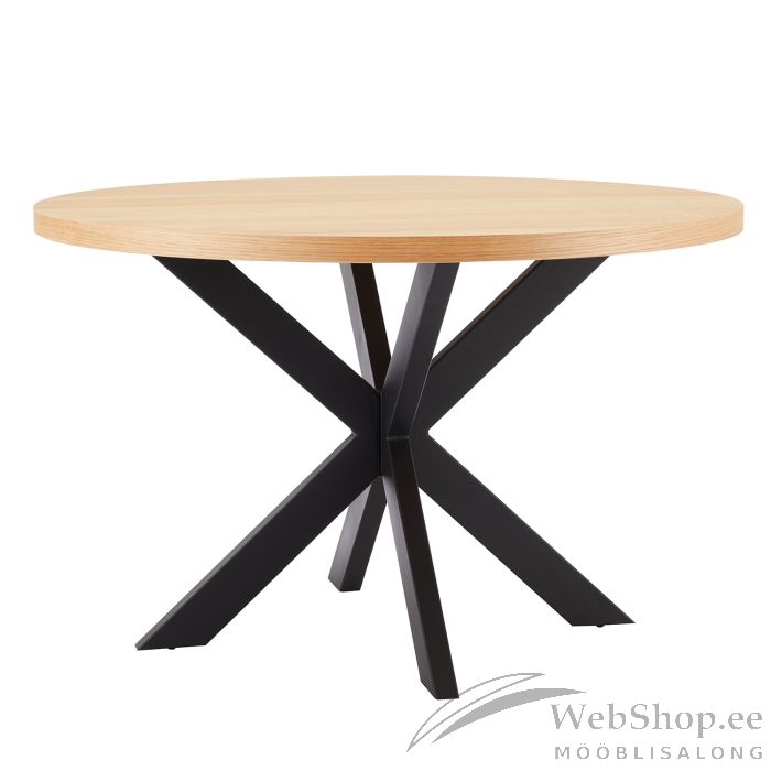 Söögilaud VANCOUVER D120xH75cm, tamm. Laua MDF plaat on kaetud naturaalse tammespooniga. Laua metallist ristjalad on viimistletud musta pulbervärviga. HOOLDUS: naturaalse spooniga kaetud lauaplaat on väga tundlik niiskuskahjustuste ja temperatuuri suhtes. Kasutage alati lauanõude all alusmatte ja kuumaaluseid. Igasugune lauale sattunud vedelik tuleb koheselt kuivatada pehme lapiga. Vältige liigset hõõrumist ja abrasiivseid puhastusvahendeid.