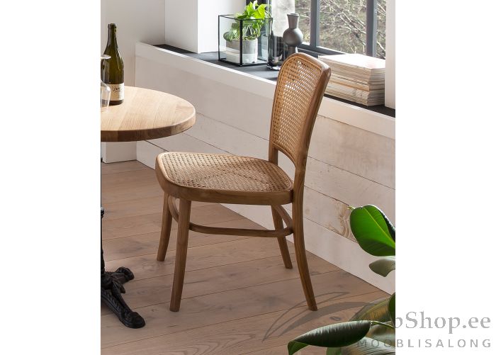 Naturaalsest tiikpuust ning rotangist söögitool. Valmistatud Indoneesias.