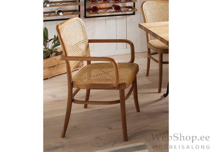 Naturaalsest tiikpuust ning rotangist söögitool. Valmistatud Indoneesias.