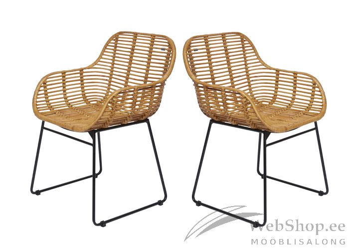 Tom Tailori kaubamärgi all toodetud naturaalsest rotangist ja antiikmustast metallist raamiga söögitoolid. Komplekti kuulub 2 tooli. Toolid on valmistatud Indoneesias.