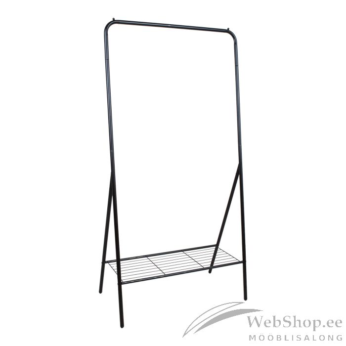 Stange FERGAL 85x48xH169cm, must. Stange on valmistatud terastorust ja viimistletud musta pulbervärviga. Riiul on valmistatud terastraadist.