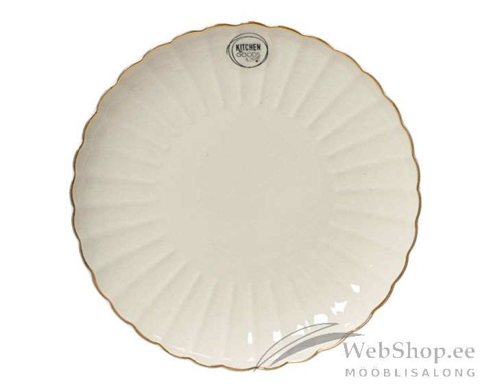Taldrik. Läikiv, kuldse äärega. Materjal: portselan. Mõõdud on D26,6xH3,3cm. Ei sobi kasutamiseks mikrolaineahjus ja nõudepesumasinas.