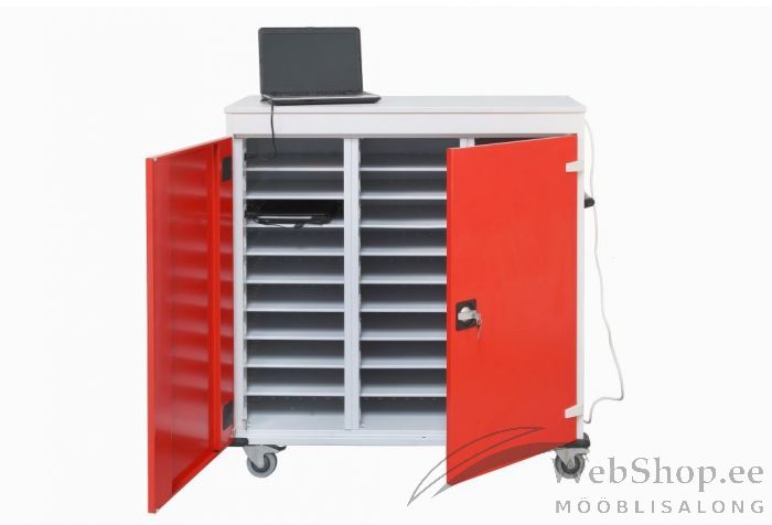 Teisaldatav riiul kaasaskantavate arvutite akude laadimise võimalusega. Ideaalselt sobiv koolidesse, kolledžitesse, raamatukogudesse, konverentsisaalidesse ja mujale, kus esineb vajadus turvaliselt hoiustada kaasaskantavaid arvuteid samaaegselt nende akude laadimisega. Riiul mahutab korraga10 – 30 kaasaskantavat arvutit. Vajaduse korral saab riiulit mugavalt teisaldada ühest ruumist teise. Riiuli rattad on varustatud spetsiaalsete piduritega. Riiulisse sisseehitatud kaitsmed välistavad ülekoormuse akude laadimise ajal. Riiuli uks on varustatud turvalise lukuga. Riiuli iga jaotise mõõdud on47x34x9,6cm. Riiul on sertifitseeritud vastavalt Euroopa tooteohutuse direktiivile EC2001/95.