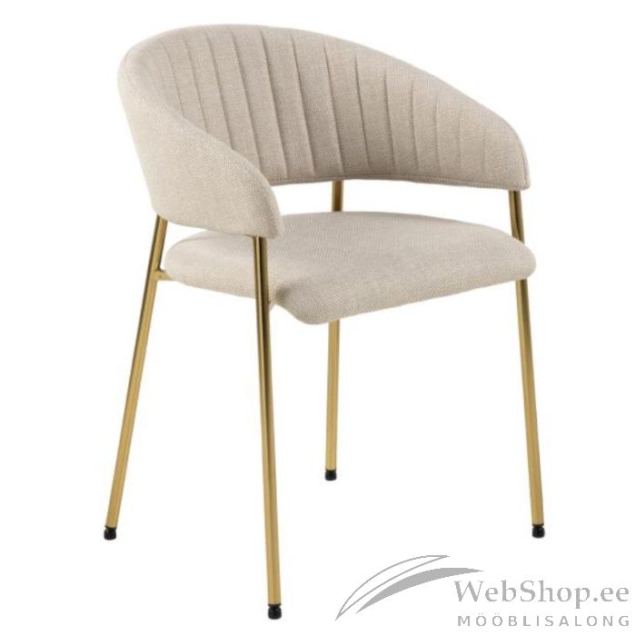 Tooli jalad on metallist, kuldses toonis, kaetud on tool polüester kangaga. Istumismugavuse tagab polsterdatud iste. Istumiskõrgus on 49 cm ning istumissügavus 42 cm, istumislaius on 47 cm. Jala kõrgus on 55.5 cm. Maksimaalne kandevõime kuni 110.kg. Käetoe kõrgus põrandast on 66 cm, käetoe laius 4 cm.
