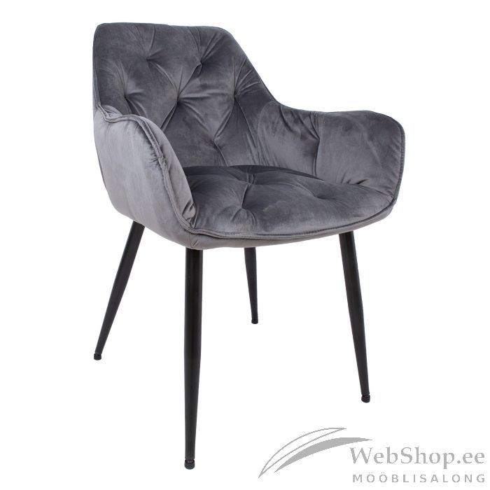 Tool BRITA hall. Mugava vormiga iste on kergelt polsterdatud ja kaetud halli sametkangaga. Istme kõrgus on 47,5cm. Kattematerjal: 100% polüester, Martindale 25 000. Istme karkass: metall ja vineer. Polsterdus: polüuretaanvaht. Metallist jalad on kaetud musta pulbervärviga. Kaalupiirang 120kg. Tooli mõõdud on 61x57x83cm.