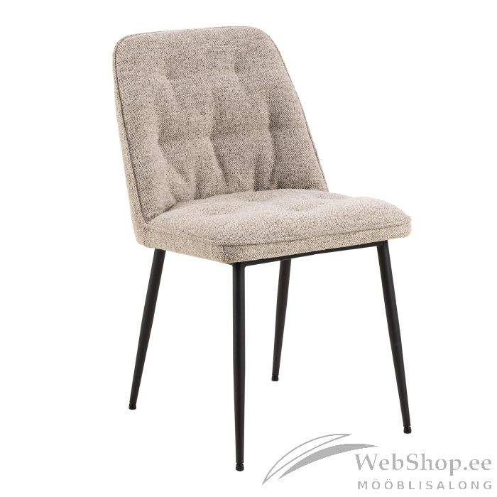 Elegantse söögitooliga saab interjööri iseloomu lisada. Tooli ajatu siluett on polsterdatud pehme beeži bukleetaolise kangaga, mis mõjub rikkalikkult. Kangas on 96% polüester, 4% akrüül, Martindale > 45000. Tooli kaunistavad detailid, mis annavad sellele lisatekstuuri. Toolil on ümarad mustad terasest jalad. Tool sobib nii igapäevasteks õhtusöökideks kui ka erilisemateks puhkudeks. Mõõdud 50x55xH84cm.