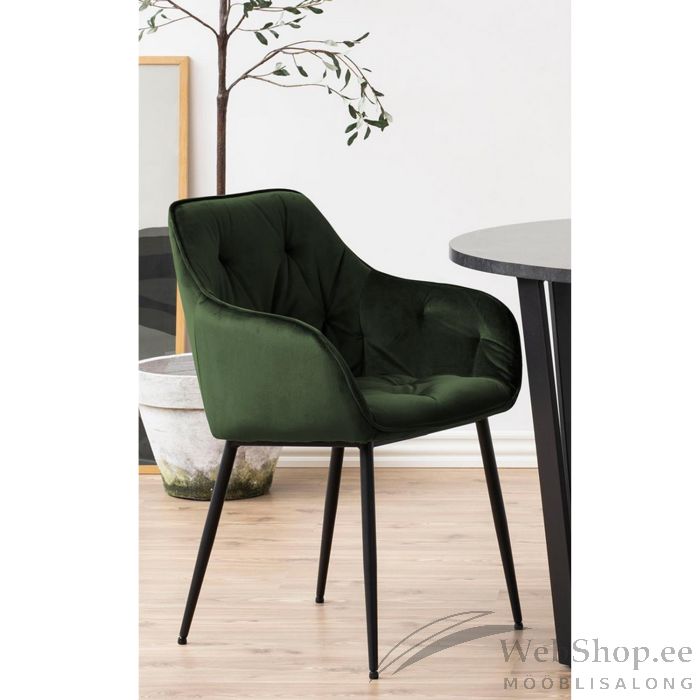 Tool BROOKE 55x58xH83cm, iste/seljatugi: samet kangas, värvus: metsaroheline, jalad: must metall, VIC fabric forest green 68AC. Kaalupiirang: 110kg.