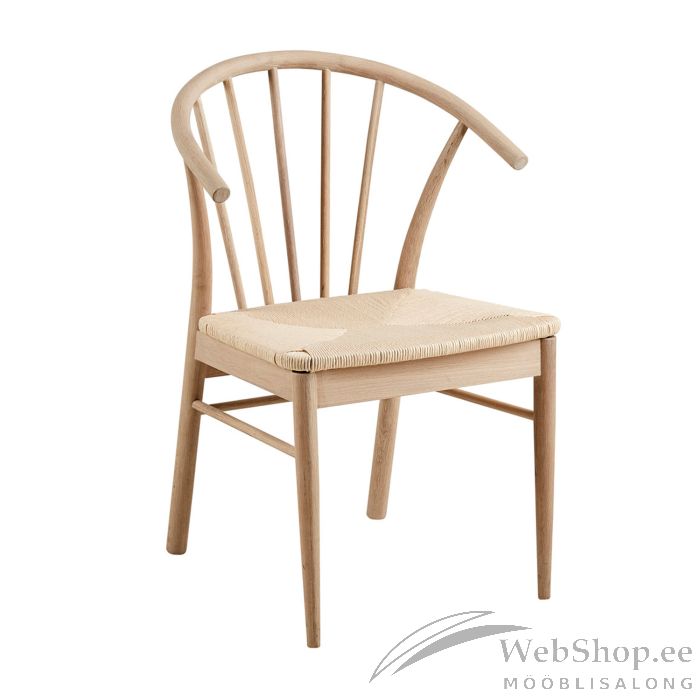 Inspireeritud skandinaavia stiilist. Vertikaalsete liistudega seljatugi toetab selga ja lisab toolile huvitava elemendi. Tugev punutud iste. Raam valge pigmenteeritud õlitatud tamm. Mõõdud 54x54xH83cm. HOOLDUS: kõik plekid tuleb koheselt eemaldada niiske lapiga. Pühkige pind kindlasti kuivaks.