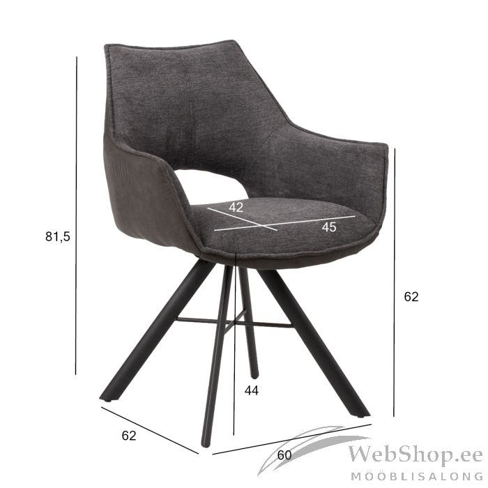 Kangaga kaetud polsterdatud iste. Seljatoe taga on käepide. Mustad pulbervärvitud metallist jalad. Iste pöörleb 180° automaatse tagasipöörde funktsiooniga. Kaalupiirang 120kg.
