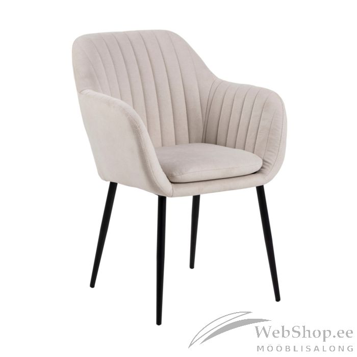 Maitsekas söögitool muudab õhtusöögid erilisemaks. Söögitoolil on koonilised jalad, vertikaalsed õmblused, pehme polster ja käetoed. Jalad on valmistatud mattmustast pulbervärvitud terasest. Kaalupiirang on 110kg. Mõõdud on 57x59xH83cm.