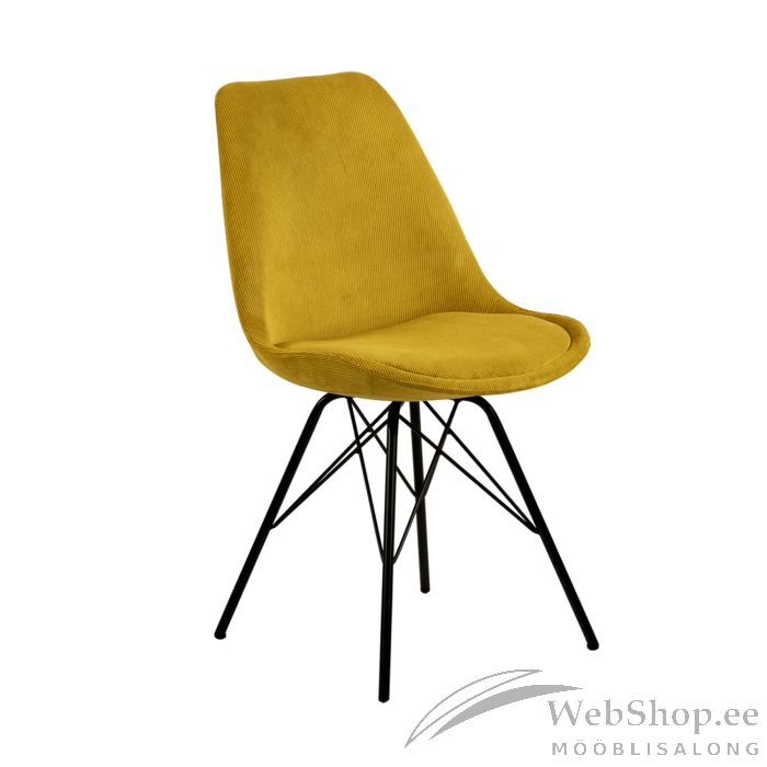 Tool ERIS 48,5x54xH85,5cm. Istme kõrgus 49cm. Tooliselg/iste: kangas- Wind fabric yellow 90, 100% polüester. Jalad: must metall. Kaalupiirang: 110kg.