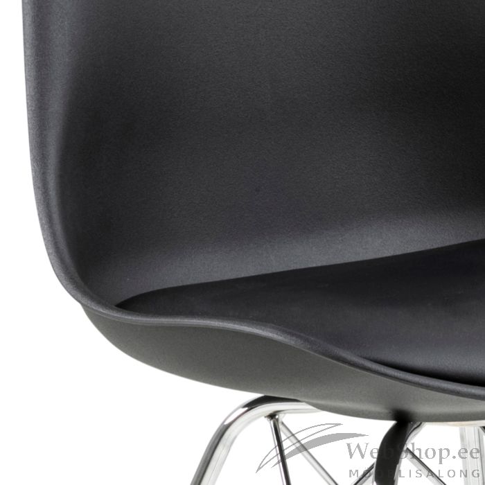Tool ERIS 48,5x54xH85,5cm. Istme kõrgus 49cm. Tooliselg: must plastik, iste: must kunstnahk, 100% polüester. Jalad: kroomitud metall. Kaalupiirang: 110kg.